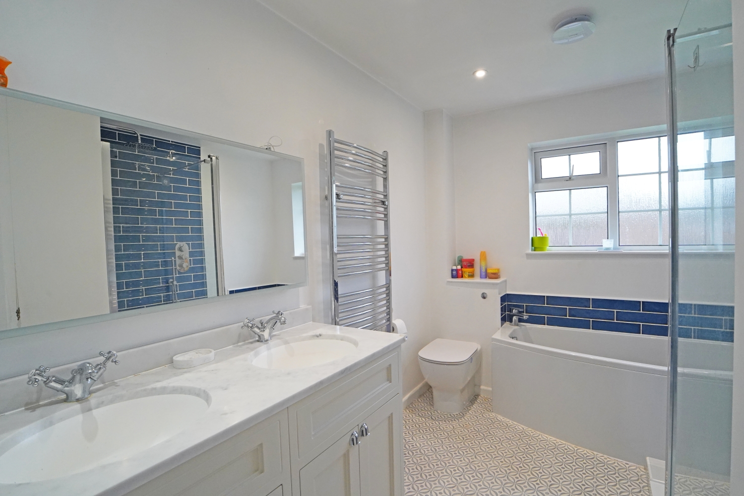 • Re-fitted family bathroom with twin sinks, bath and a separate shower cubicle