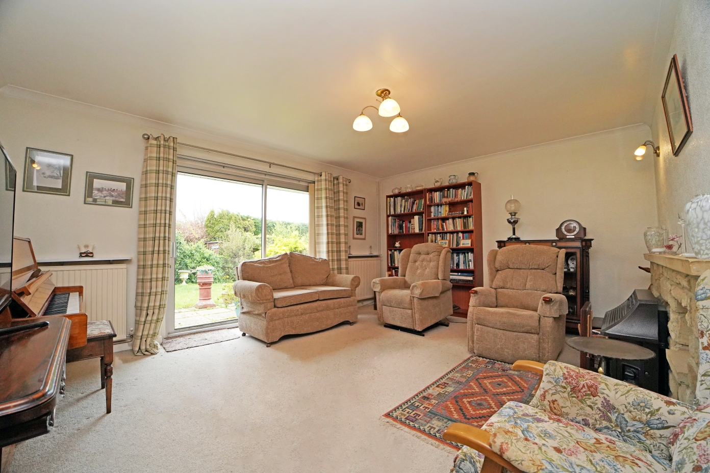- 'L' shaped living room/dining room with fireplace and patio doors to the rear garden